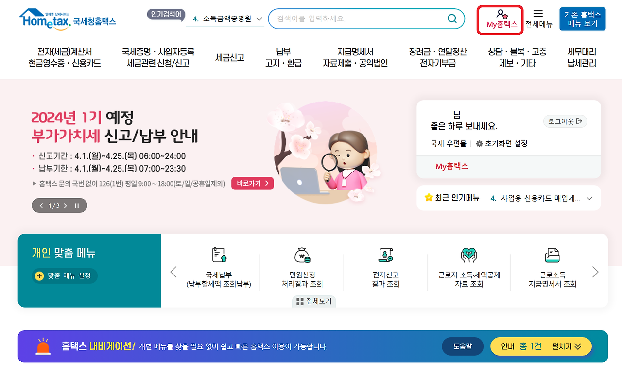 먼저 홈택스에 접속해서 인증서를 통해 로그인을 해야 합니다. 이후 MY홈택스에 가면 작년에 환급받은 금액을 확인할 수 있습니다. 그렇다면 올해 종합소득세 환급 조회를 어디서 확인해야 하는지 알아보시죠.